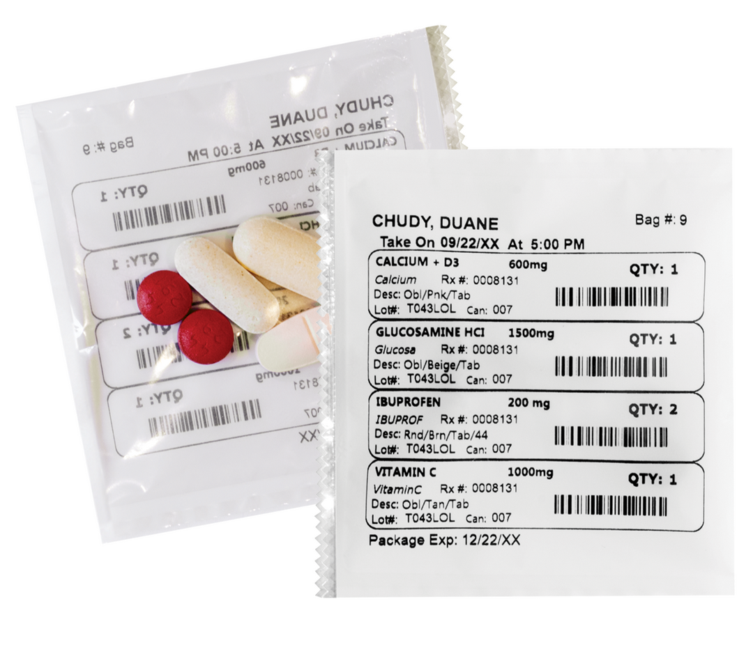Multi-dose adherence packaging is not only convenient, it also ensures doses are not missed, lost, or forgotten. With our system, all of your medications will arrive boxed and ready to dispense.